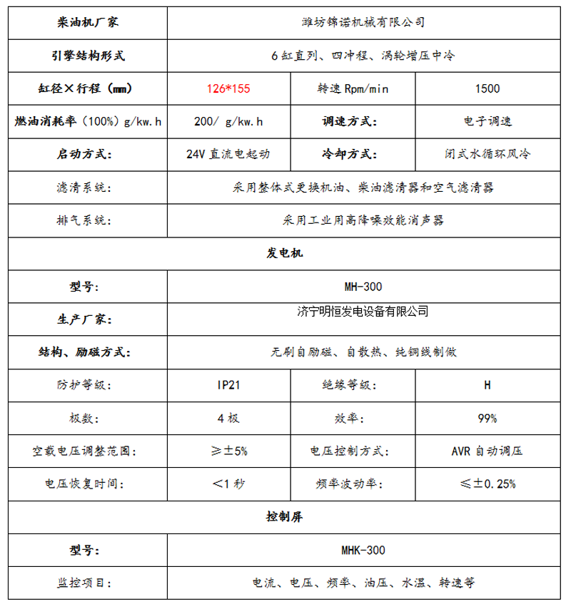 300KW濰柴斯太爾系列柴油發(fā)電機組技術參數(shù)